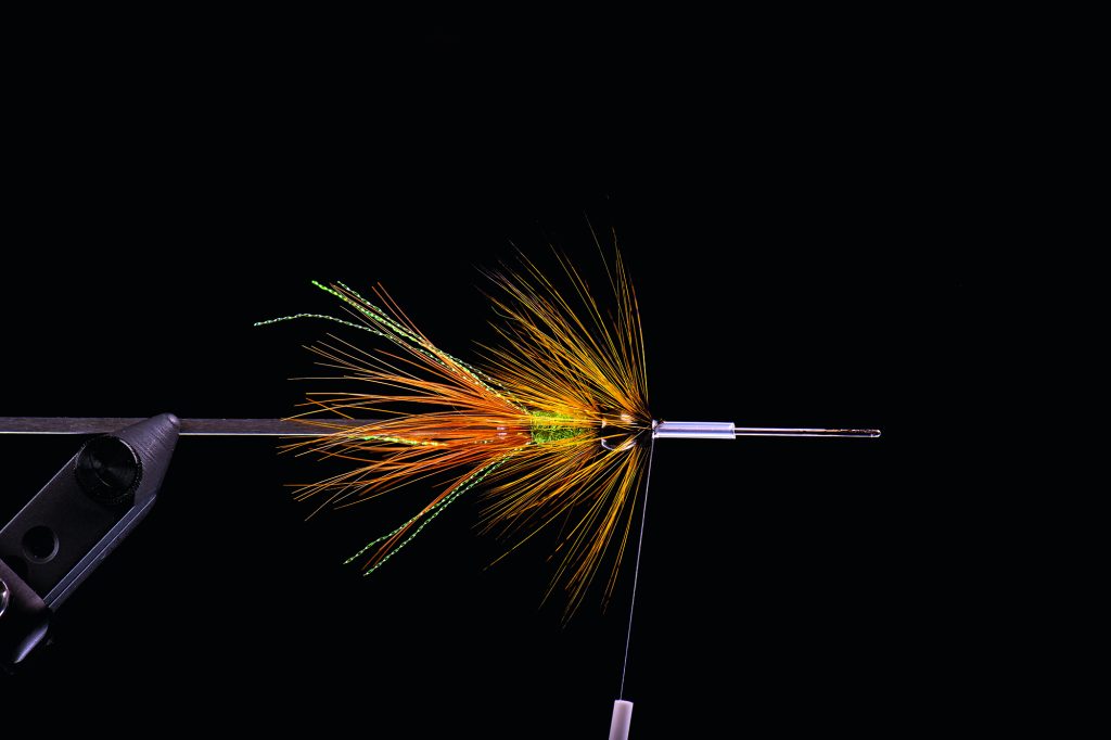 “When tying Astrid, Tilda, and Horstsokken, follow the recipe carefully. Use a little superglue on the weight but apply it sparingly to avoid contaminating the hackles. The design and weight of these flies make them fish-ready as soon as they hit the water. I always use loose-hanging hooks and a Swingtube hook guide with these flies. It may seem like a minor detail, but I’ve experienced situations with many salmon where the hook guide made a real difference.”